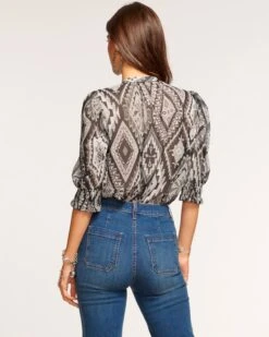 A surefire way to switch up your style this season, the Adalynn is the stylish blouse your wardrobe is craving. Adorned with a luxe soho diamond print that amplifies the slim silhouette, pair with your favorite Ramy Brook denim for a look that never tires.