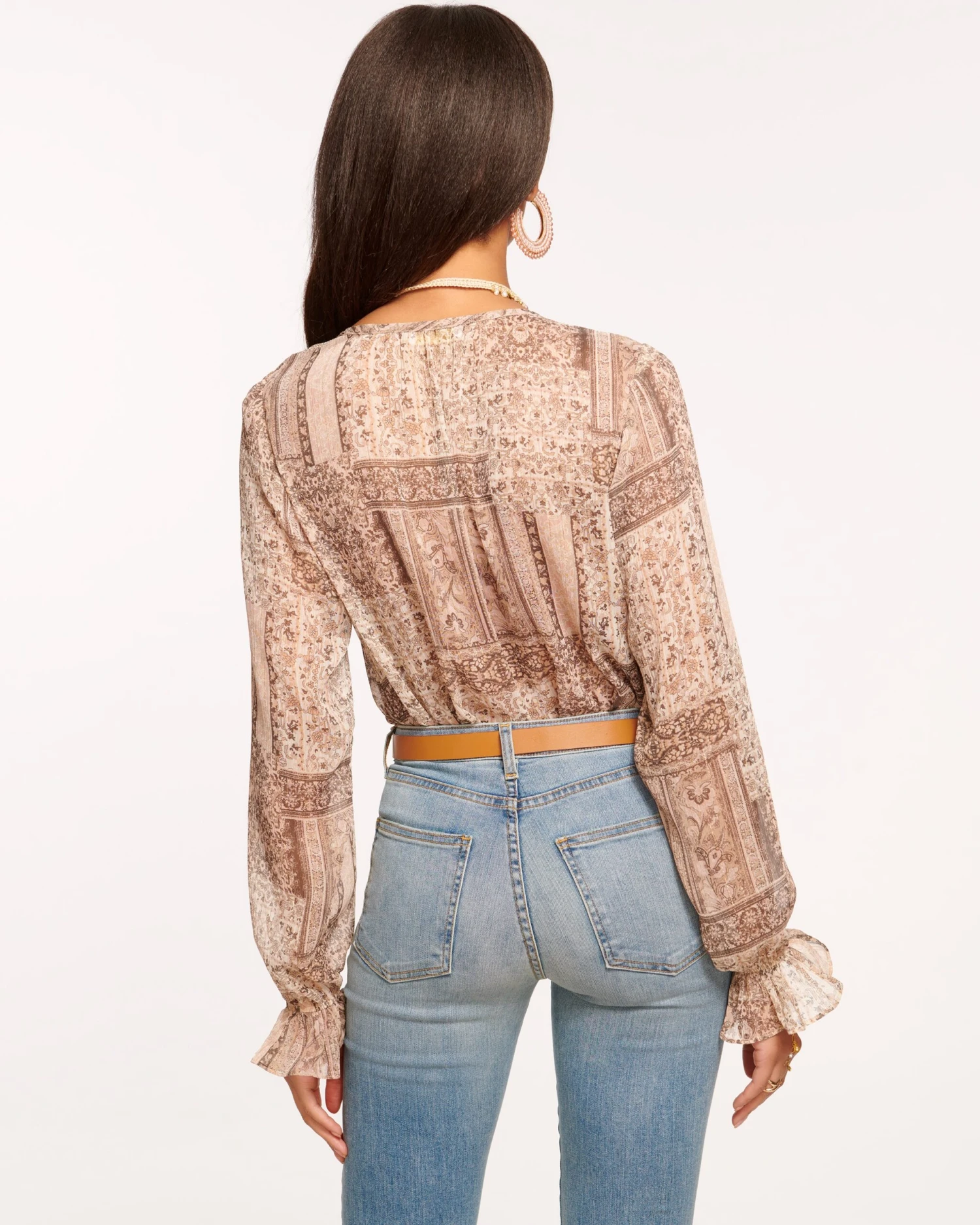 When temperatures begin to cool, raise the style heat with the Ariel, a patchwork printed blouse with a bohemian flair. Crafted with a collarless, button down silhouette, keep your style contemporary and cool with every wear of this fashionable design.