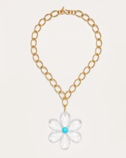 A statement piece sure to enhance your look, the Bobbi Flower Pendant Necklace is a splendid design to smile in. This chain link necklace is adorned with a clear resin flower and paired with the colorful center detail that will add a charming touch to your style this spring. Make a statement by pairing this necklace with the