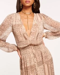 For a summer of fun, look no further than the Bobbi to get you through the season in style. This lightweight, long sleeve maxi dress is crafted with a lively patchwork print that enhances the neutral colorway, a luxe touch perfect for a ladies lunch.