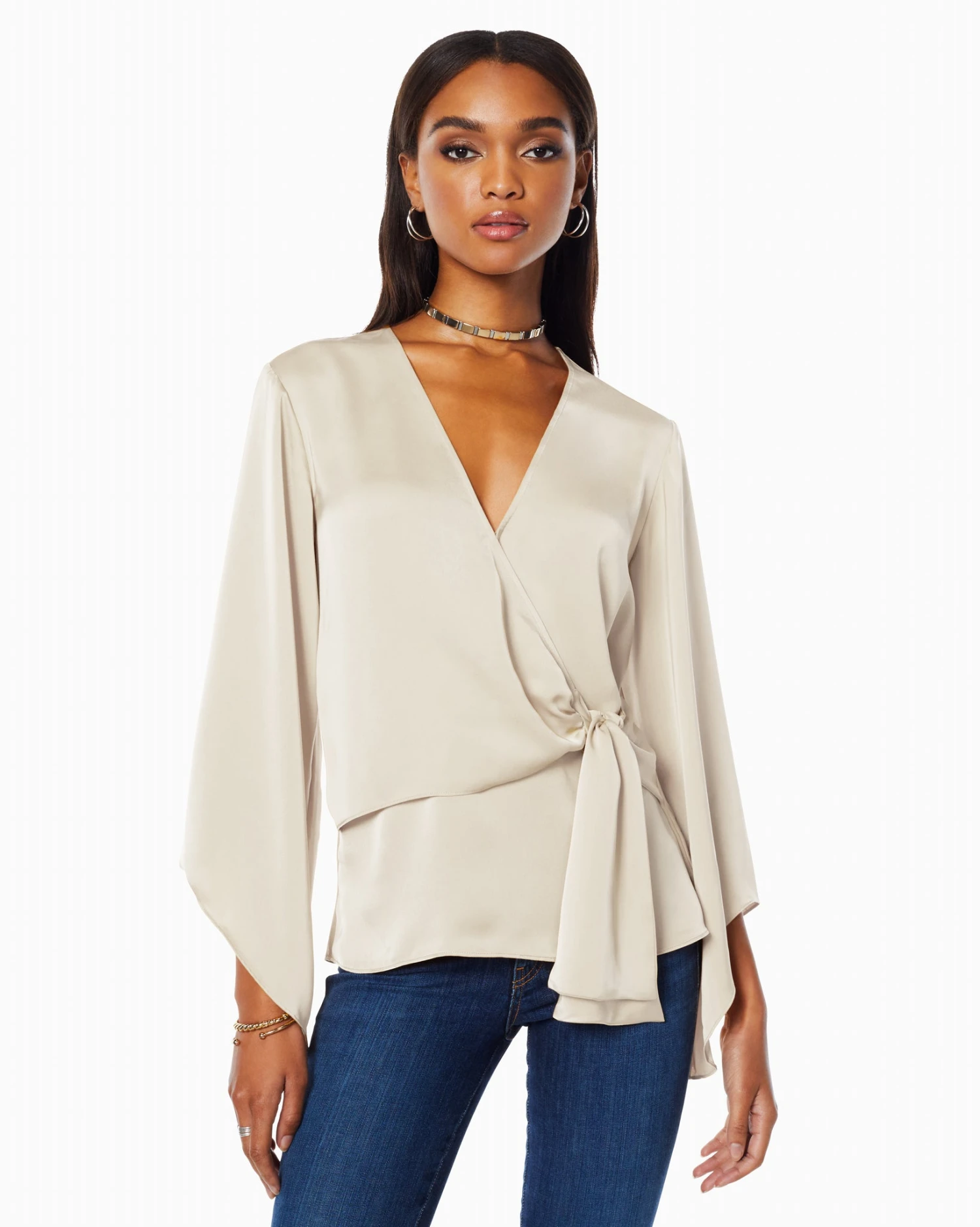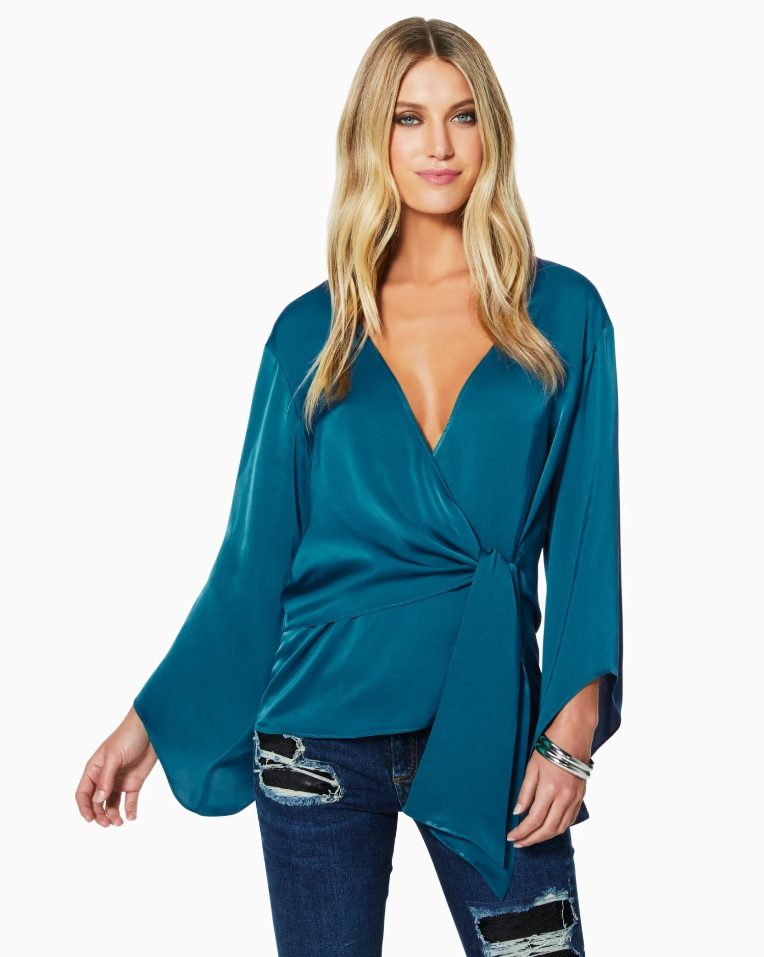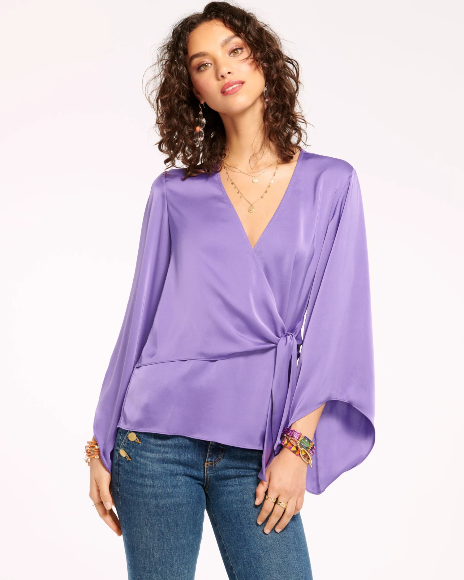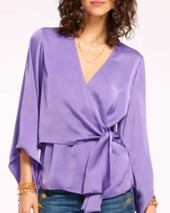 Graceful and elegant, every wear of Cassandra will have you feeling like your best self. The v-neck, wrapped bodice with side tie promises a figure flattering fit, while the loose sleeves with statement cuffs add a playful touch. Crafted in silky satin in a striking shade of scarlet, swap out your trousers for denim to seamlessly take this elevated staple with you from office to cocktails in no time.