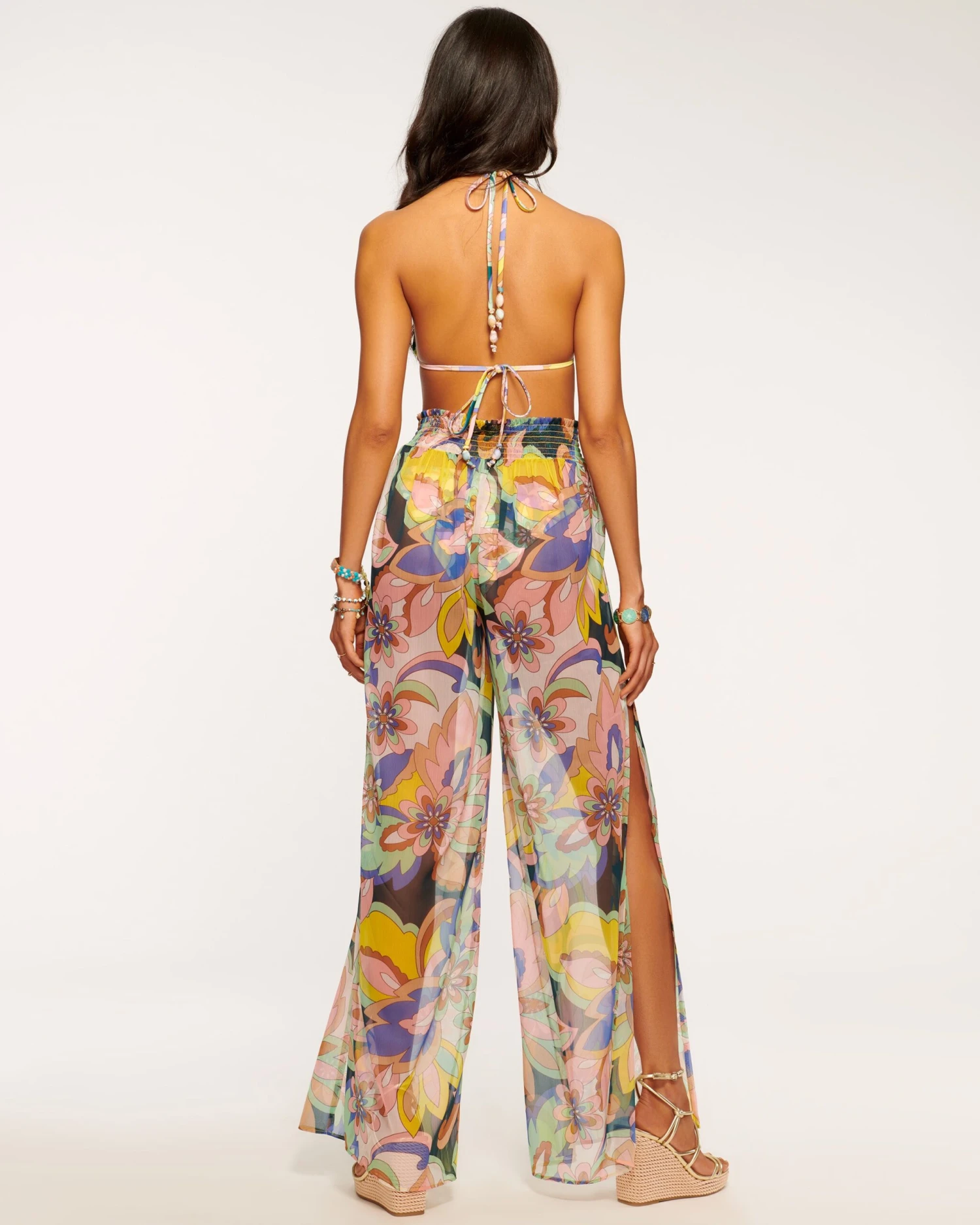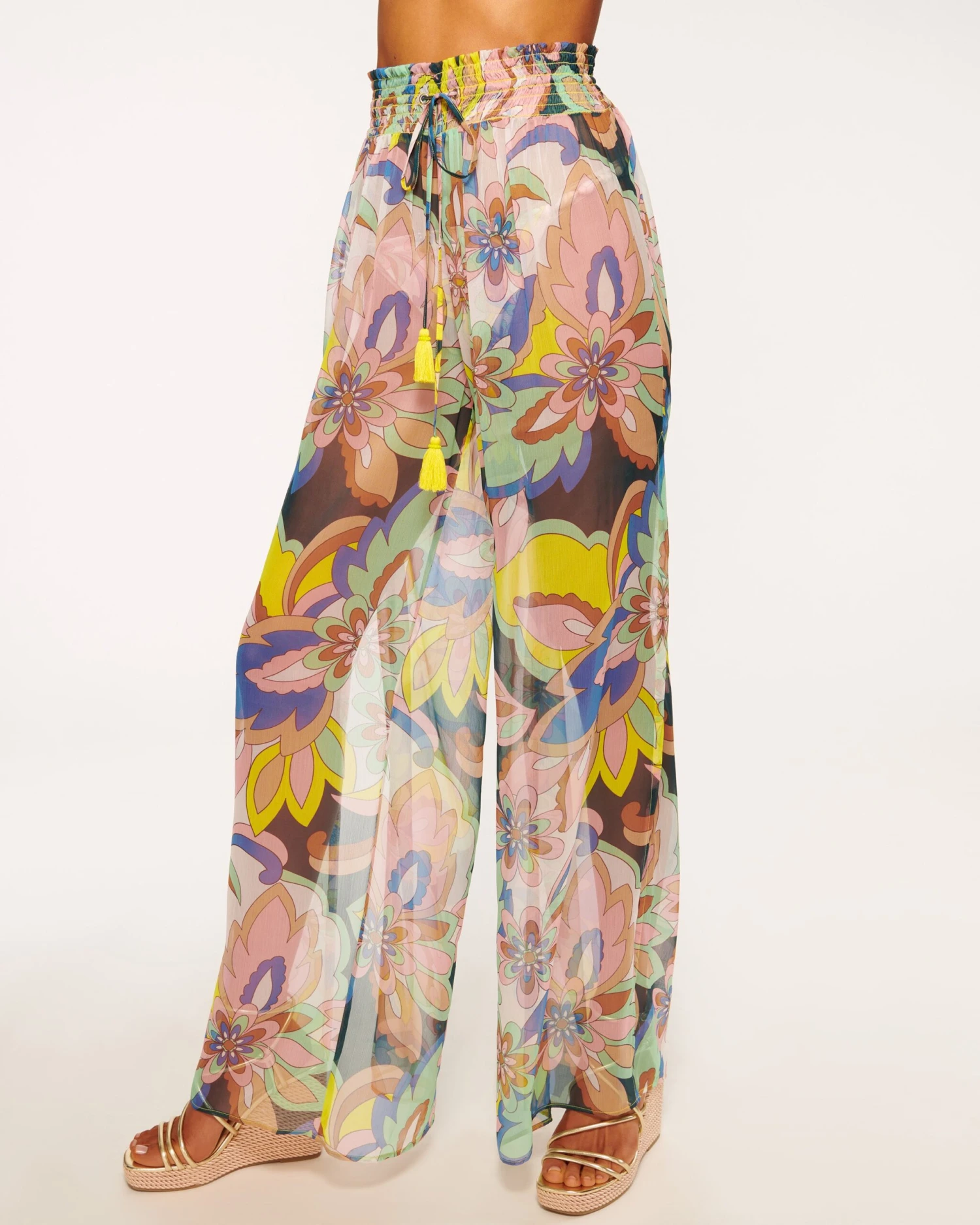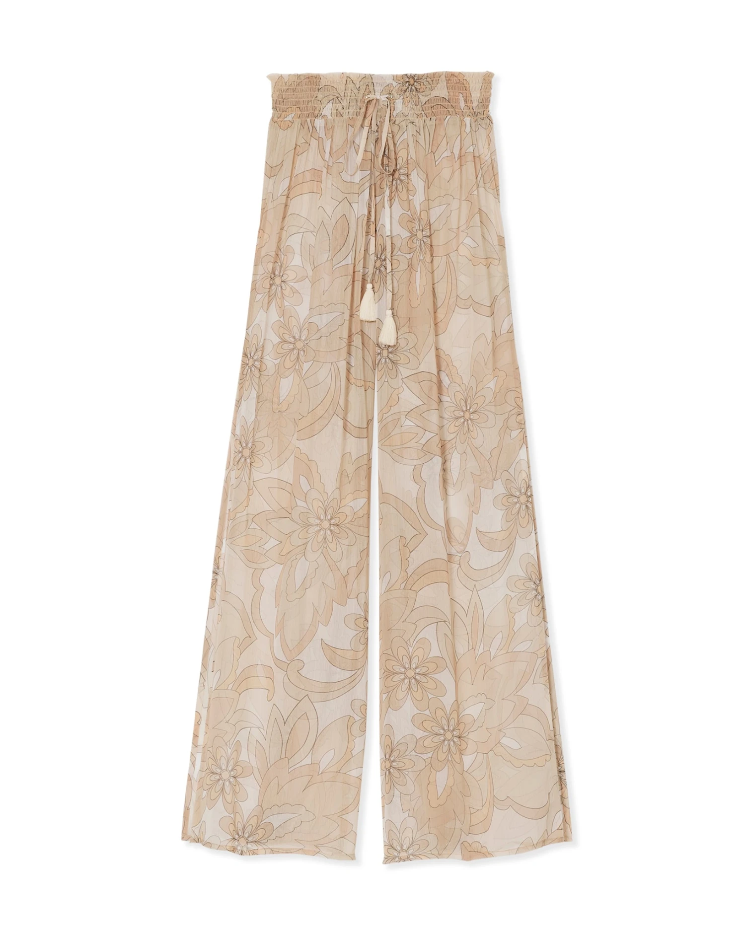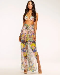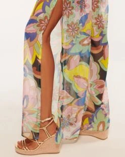 Ace your poolside style with the Coco, a pair of sheer pants complete with a dynamic floral design. Sitting high at the shirred waist for a close fit, and complete with an adjustable tie, settle onto vacation time with these cool and comfortable pants.