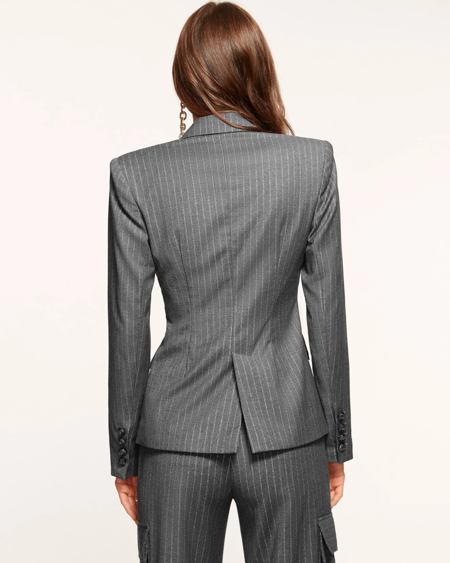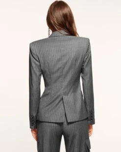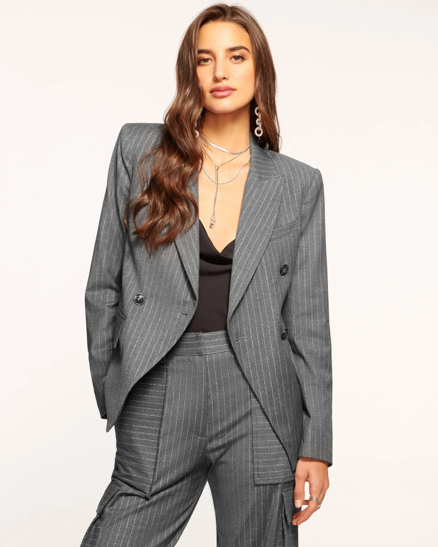 Suit your style, and your frame, with the Collins, a lurex pinstripe jacket suitable for the office and beyond. Cut with an asymmetrical silhouette for a modern look and feel, pair this style with the matching Noa Pants for a winning look you’ll revel in.