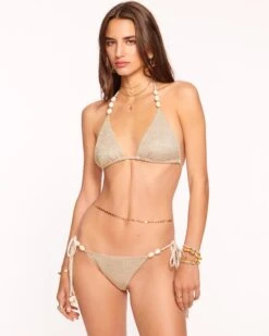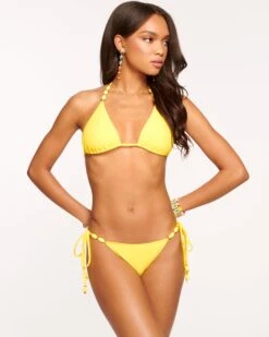 Made to match with the Paula Bikini Bottoms, lean on the classic Elsa to get you through the summer in style. Adorned with beads on the halter straps for a contemporary touch, lift your spirits each time you lounge in this stylish bikini top.
