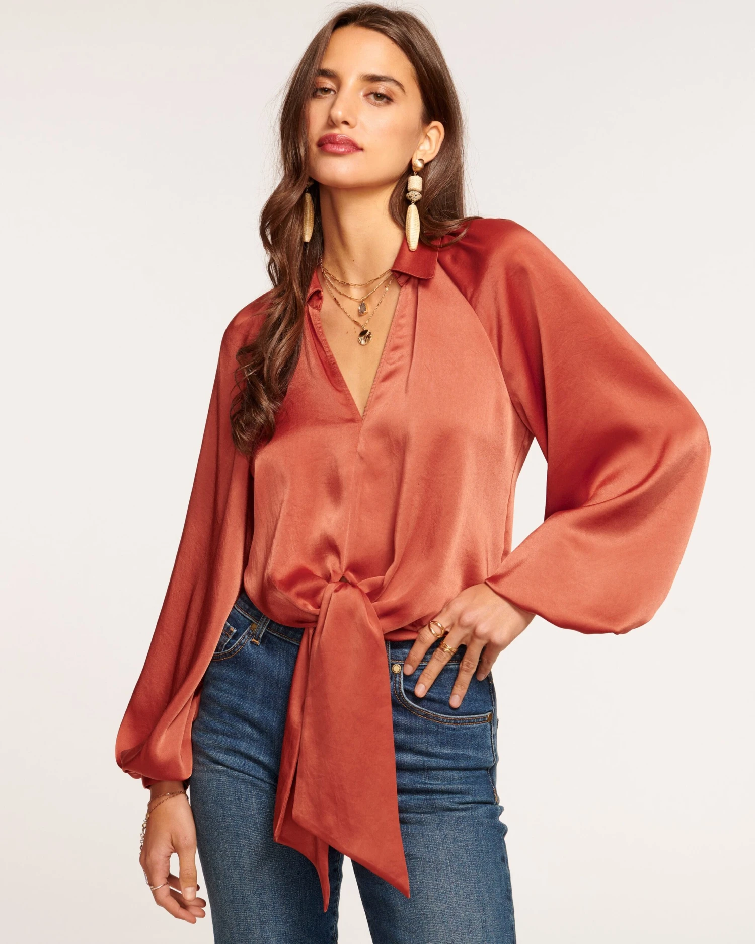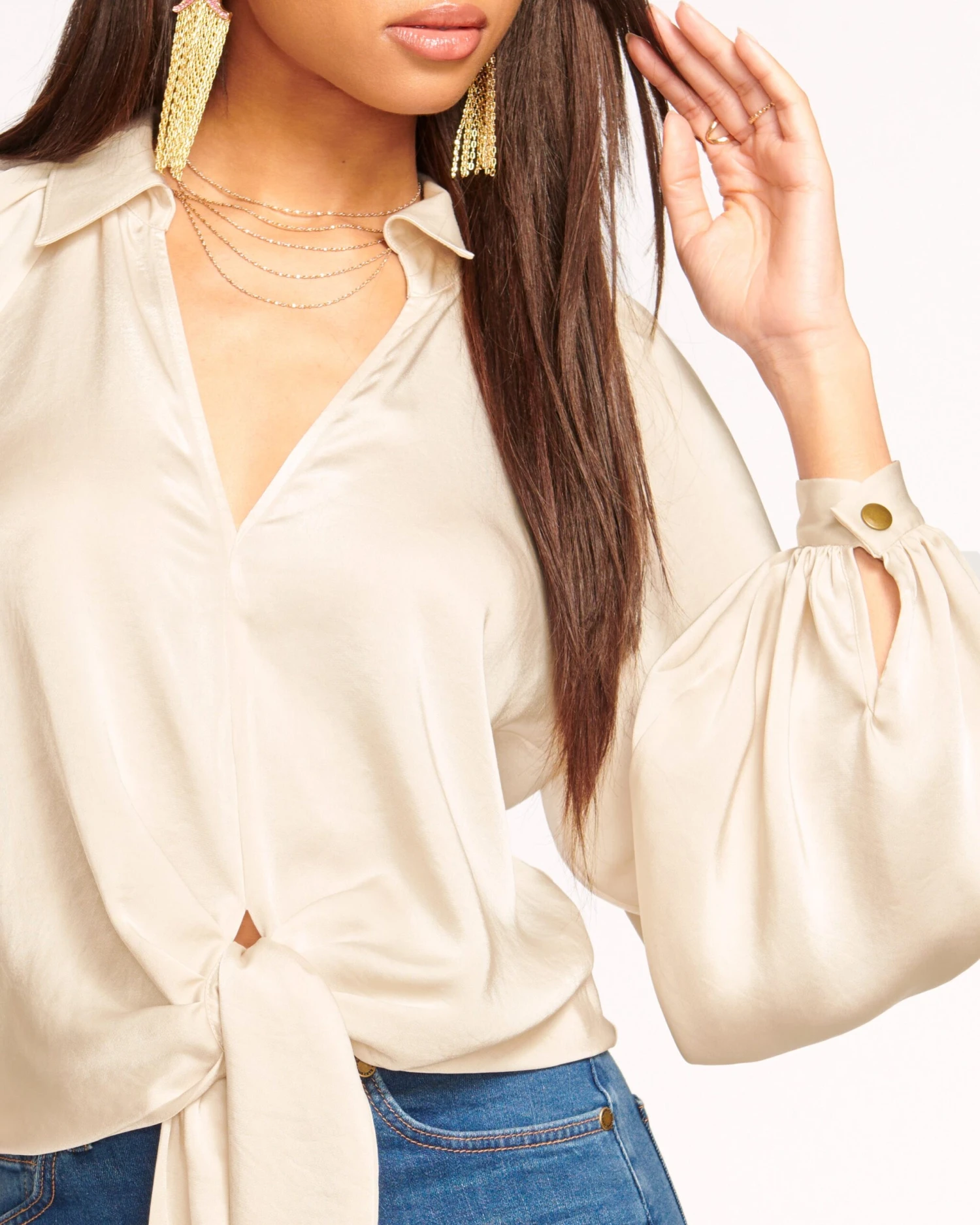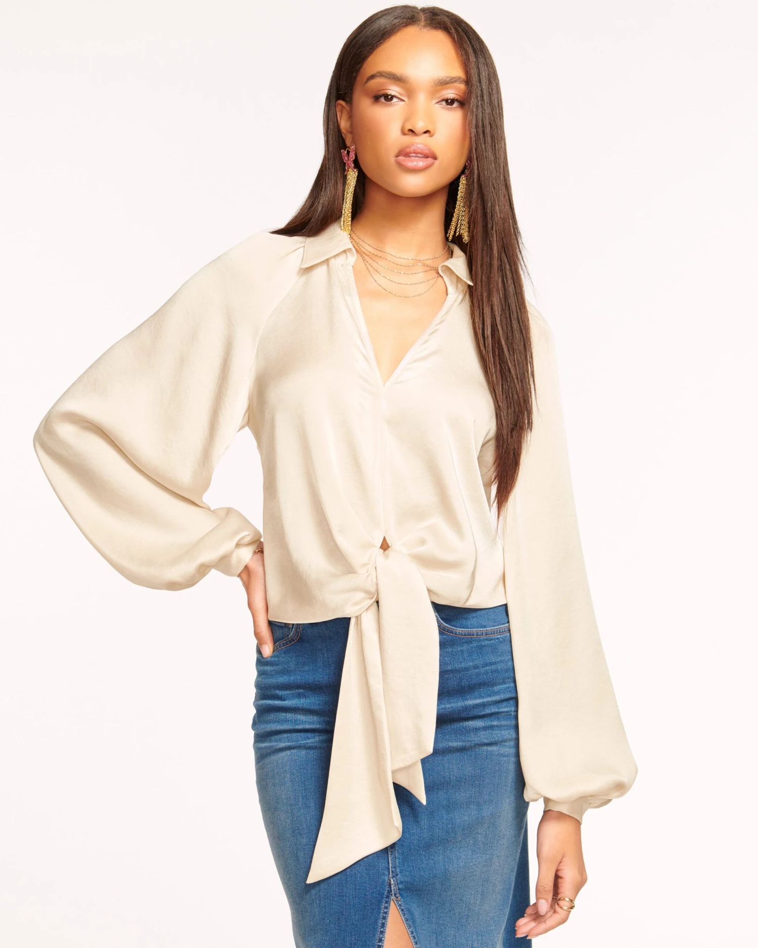 A classic silhouette with a modern twist, the Emily is the perfect start to any outfit. Delivering a sophisticated touch with the collared silhouette, the statement sleeves and tied waist make this contemporary blouse a must have for the season ahead.