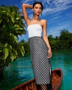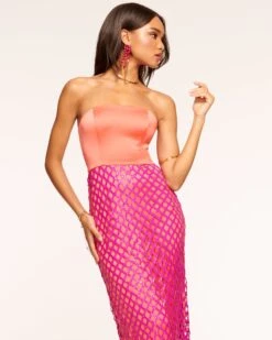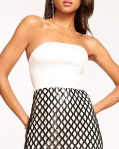 A style worthy of planning a party around, slip into the Giselle for your next event. A formal dress with a modern touch, this two-toned design is crafted with a stunning strapless bodice and lattice sequin overlay for a head turning finish.
