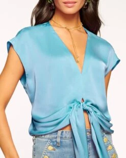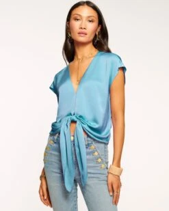 Get tied up in pretty pieces this season with our luxe Hazel Top, a satin charmeuse blouse we know you’ll love. Offering a wide v-neckline, this flouncy top ties at the core for a subtle skin reveal that’s equally daring and demure.
