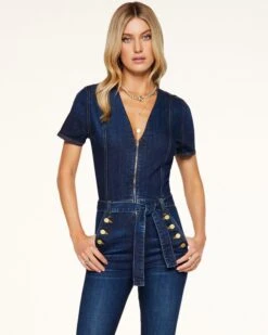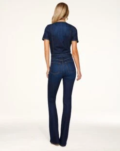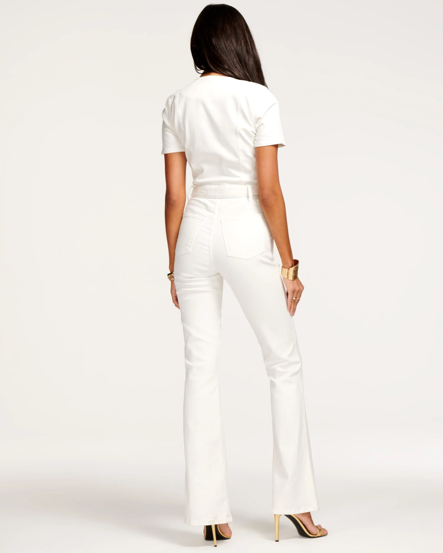 If you love our Helena Flare Jean, then you will be obsessed with the Helena Jumpsuit. We gave this always-in-style one piece the iconic features of our best-selling jeans – sailor buttons, 70s edge, and subtle detailing at the center of the thigh to shape your silhouette and look slimmer in all the right places. The slim-fit style features a sexy v-neck and zipper closure so it’s easy to put on, while also possessing a tie-waist for a custom cinched fit.