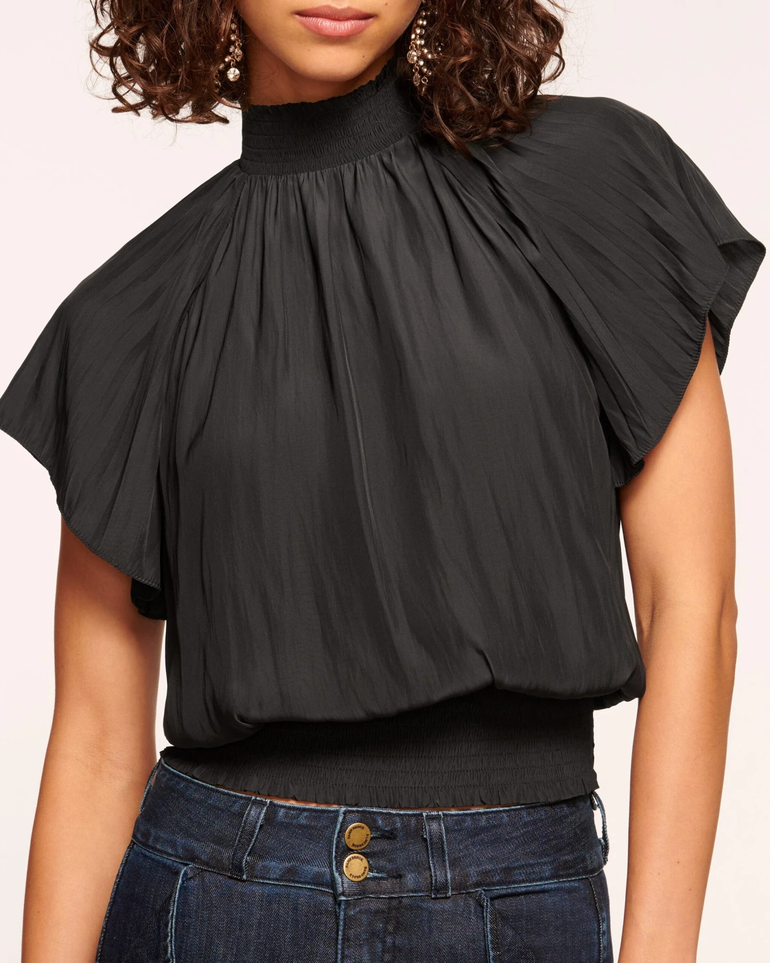 The perfect polishing touch to any look, the Iris will have you acing your style game. This short sleeve, high neck top is crafted with breezy crepe de chine for a luxe fit, while the shirred waist adds a curve loving touch to this fluid silhouette.