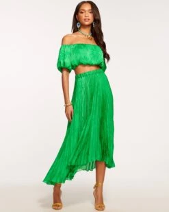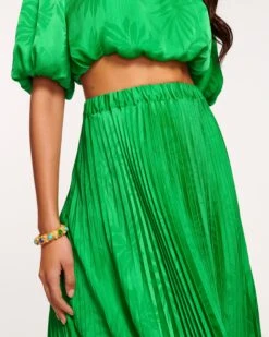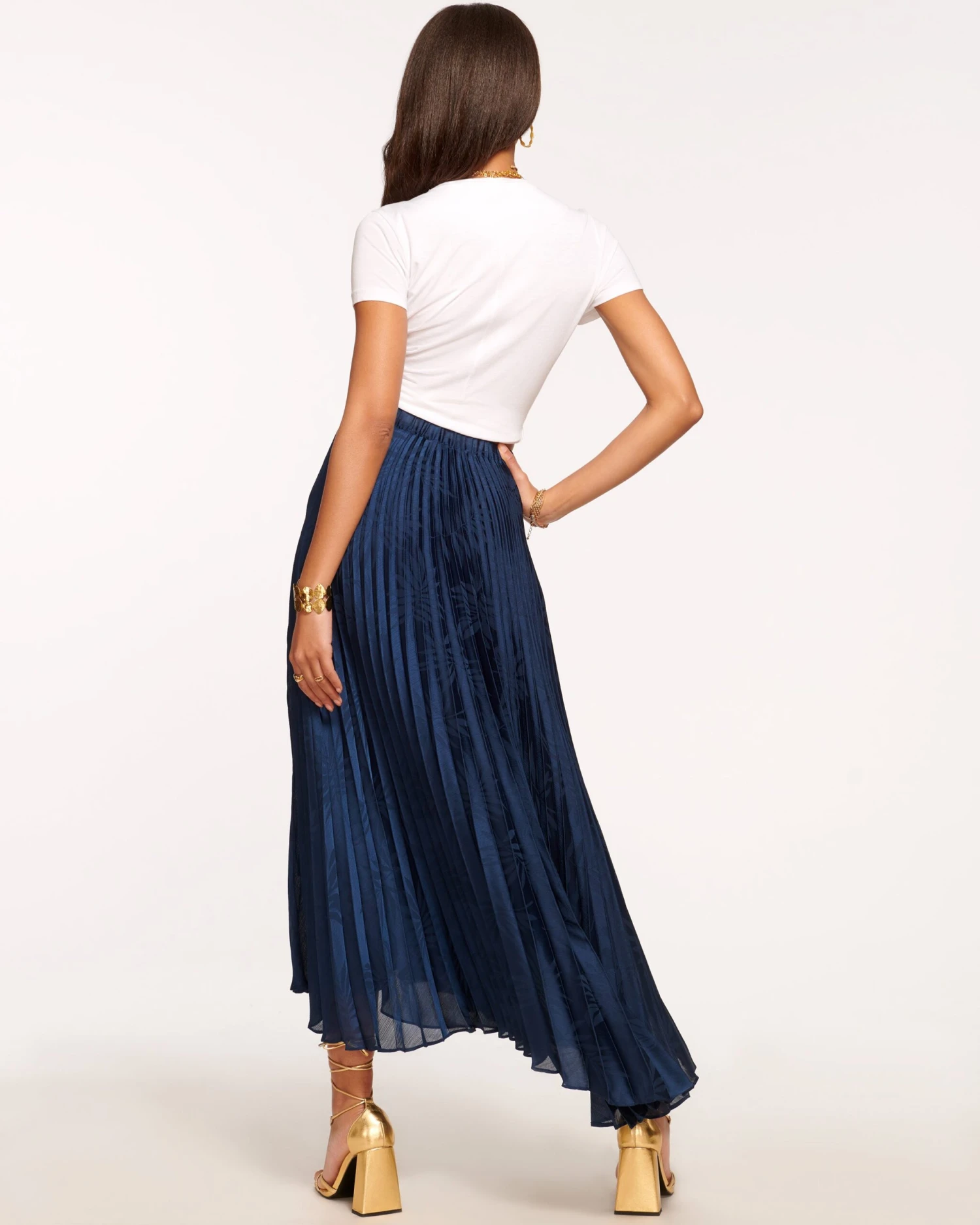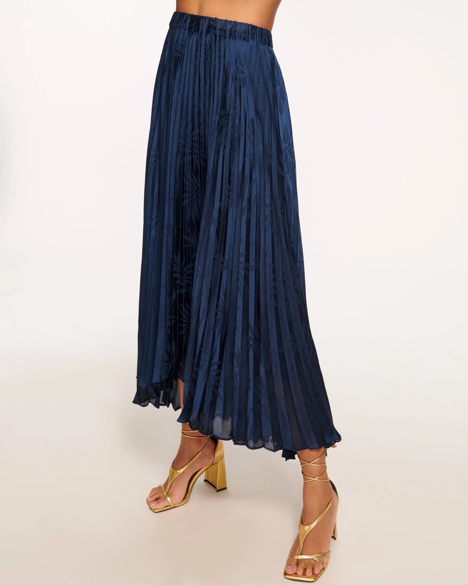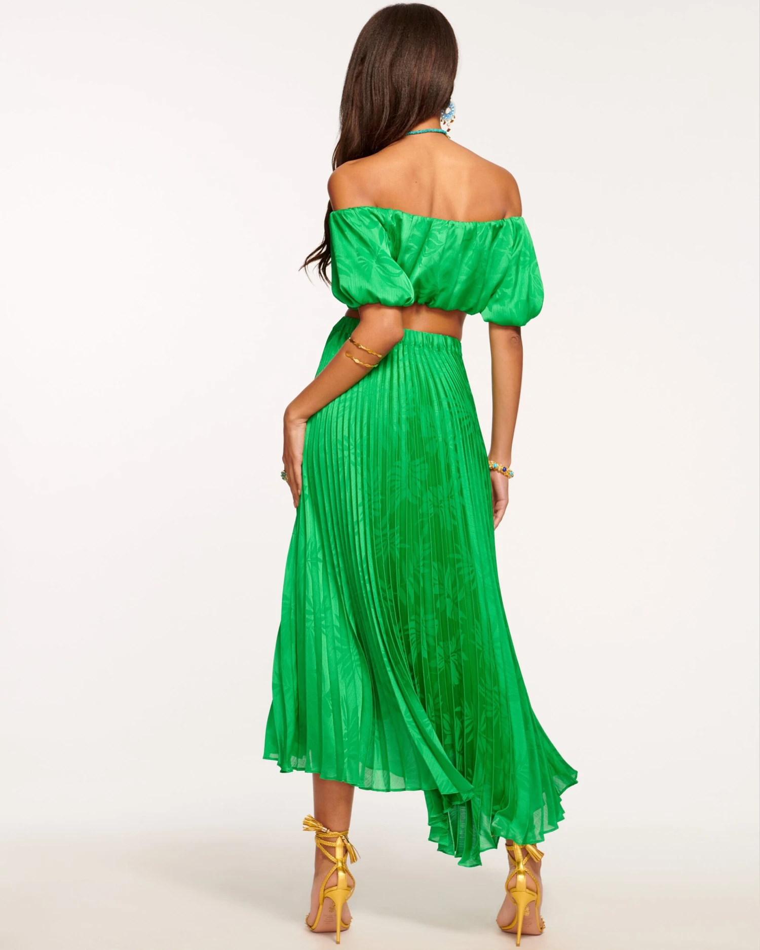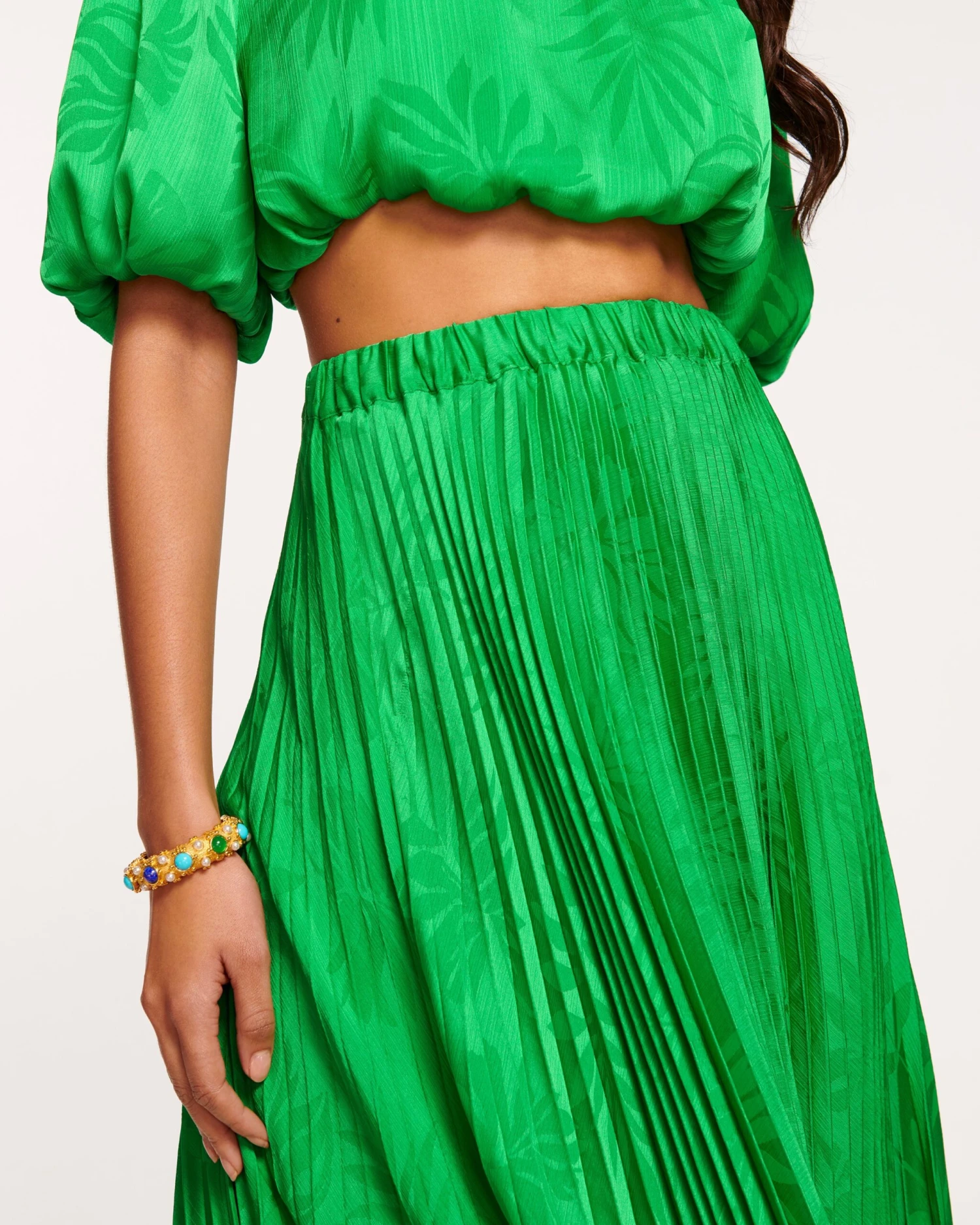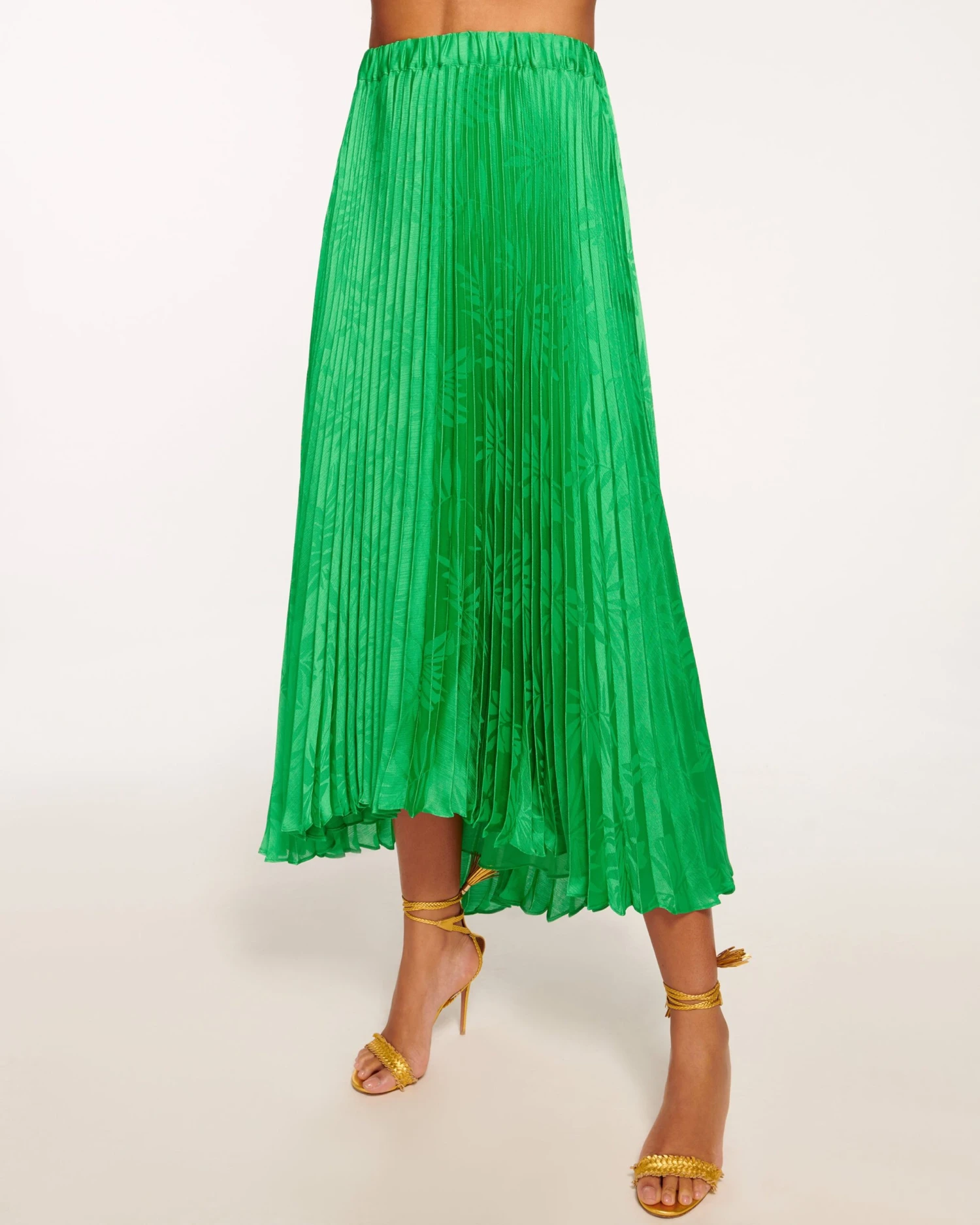 Refresh your wardrobe with the addition of the Kali, a pleated midi skirt with a statement delivery. Beautifully crafted with island palm jacquard for a dimensional touch, take this stylish design from day to night with the simple swap of a top.