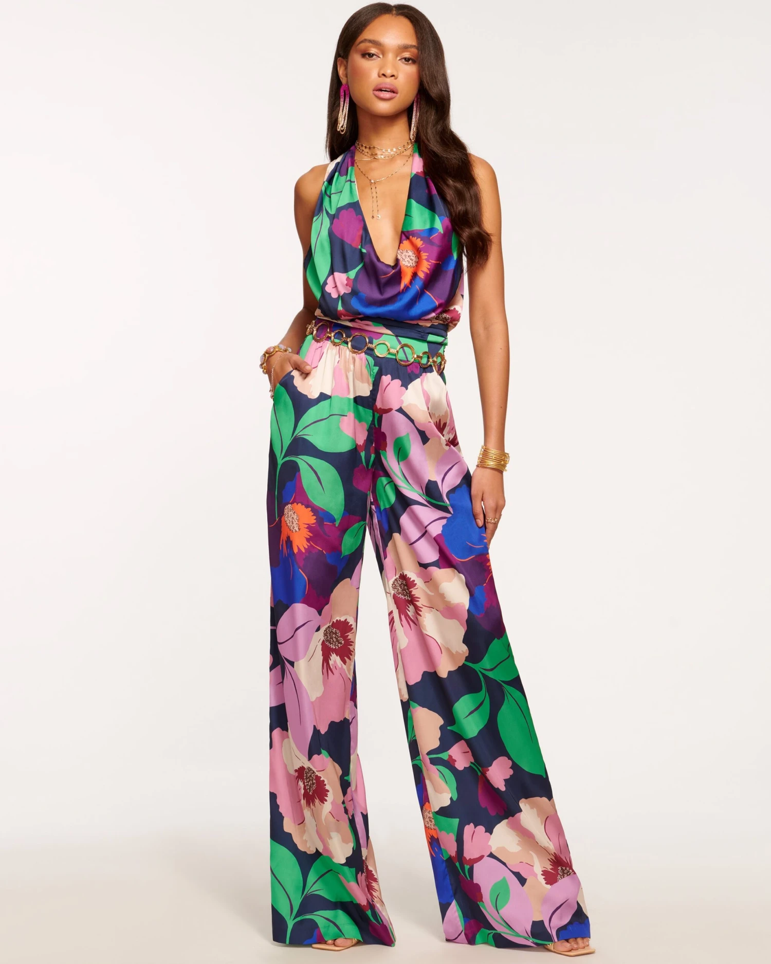 Watch your summer wardrobe blossom when you slip into the Marnie. This polished pair of high waisted trousers feature an uplifting multicolored floral print design, and paired with a statement top or a white t-shirt, delivers a style to smile in.