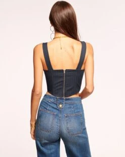A statement piece designed to bring the heat, the Parker exemplifies sophisticated sexiness. This striped top is crafted with embroidered empire suiting for a flattering fit, while the button down silhouette effortlessly enhances this sultry style.