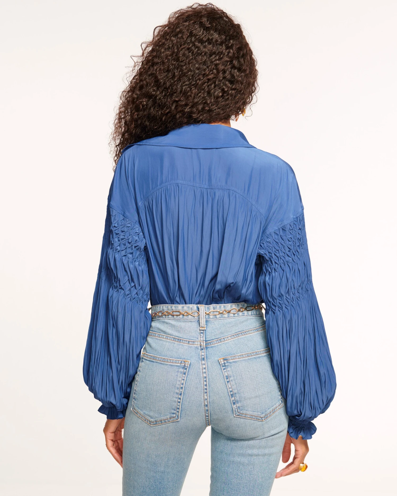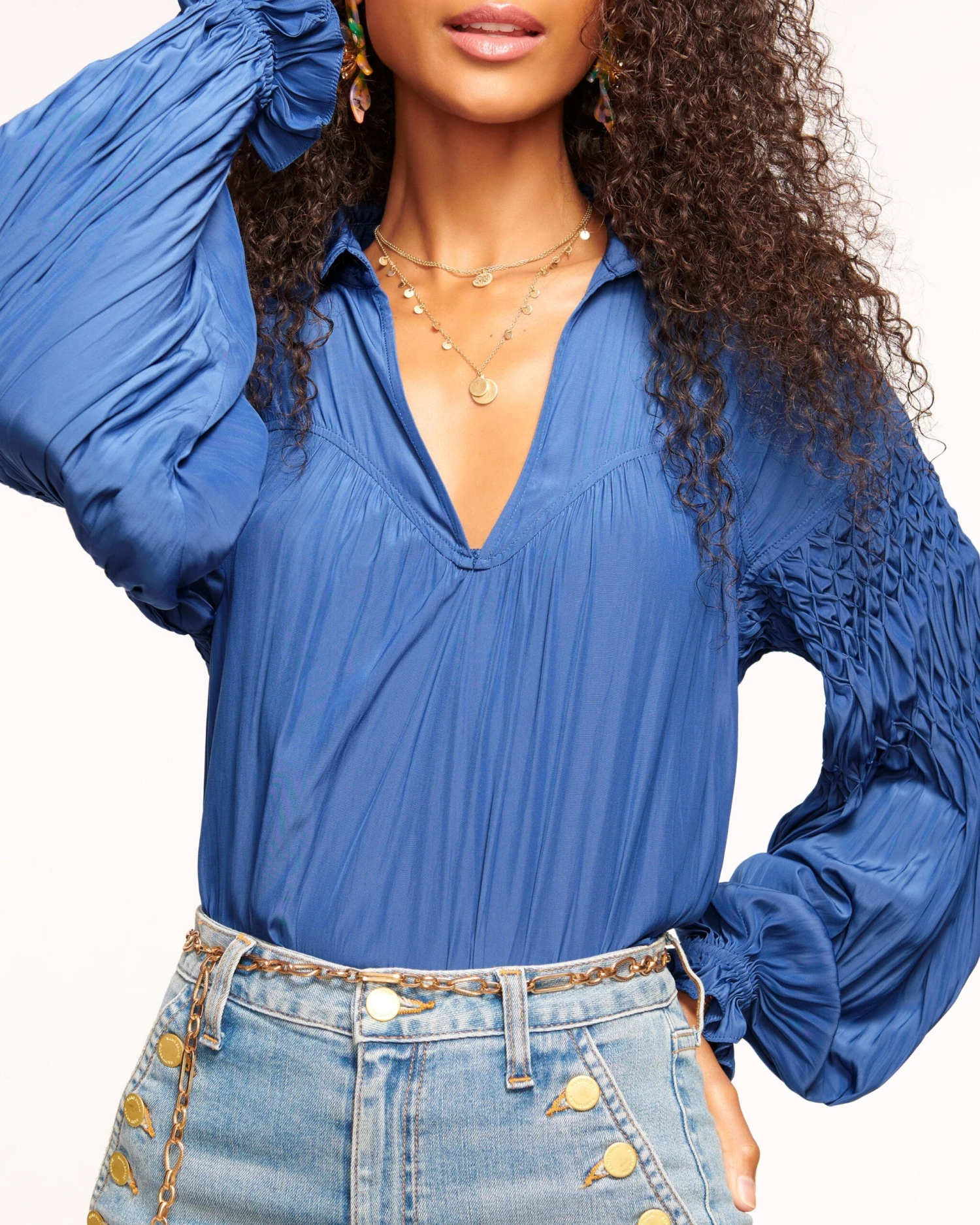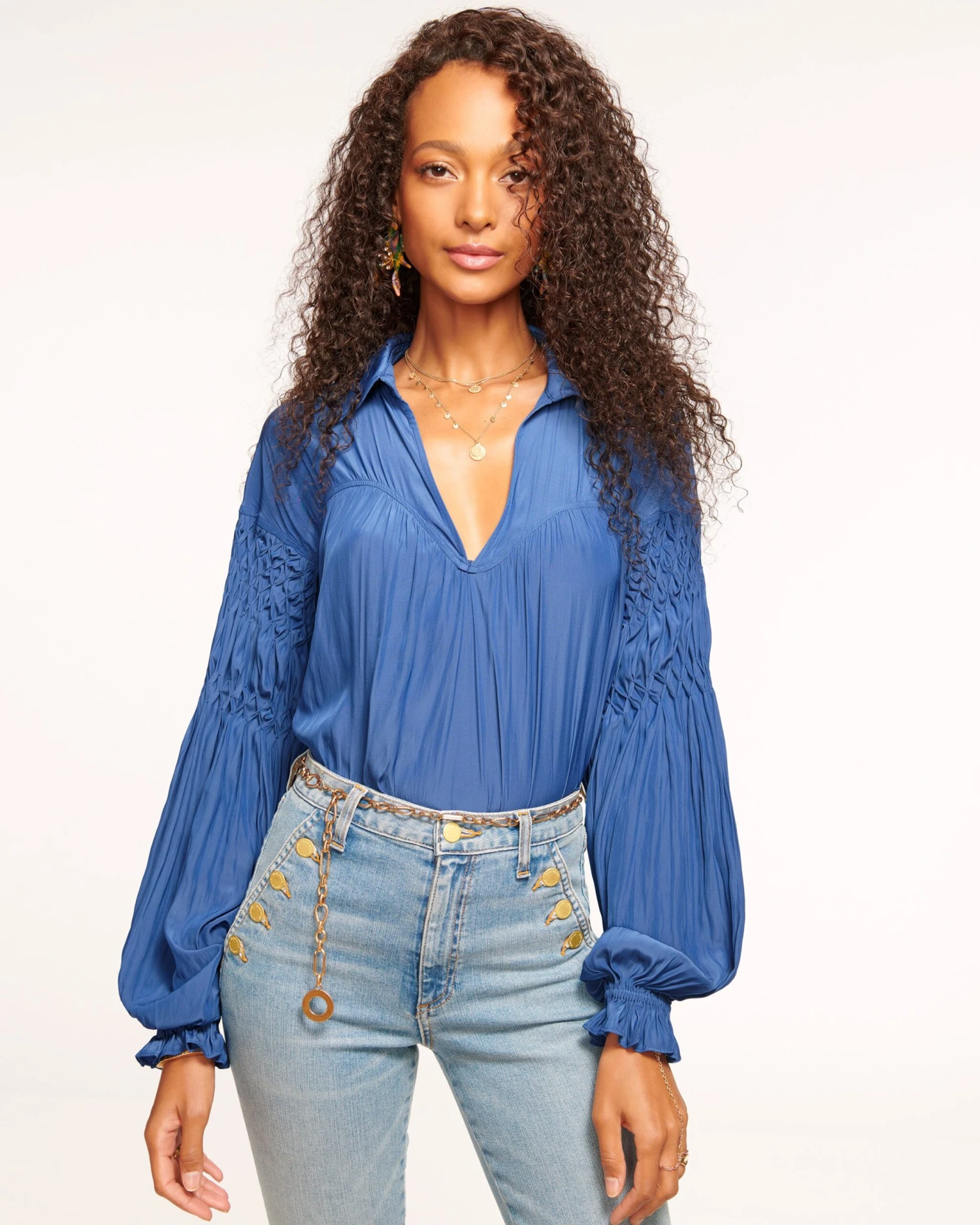 A beautiful blend of sophisticated and modern, the Scarlett is the perfect blouse to complement your style. The intricate details on the flowing sleeves provide a charming touch, while the timeless collared silhouette lends a refined feel to this sweet design.