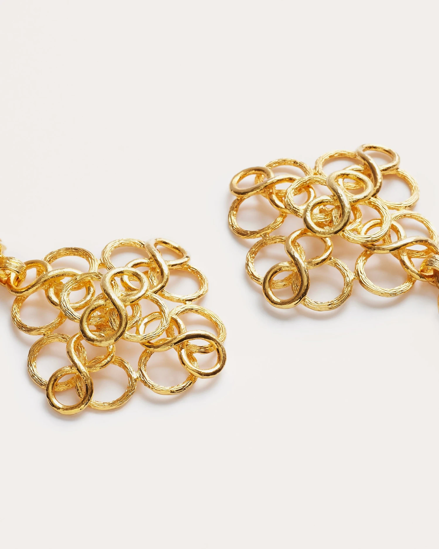 Frame your face with the beautiful Sharmin Swirl Earrings, a pair of earrings crafted with 22-karat gold electroplating for a high shine finish. Made to beautifully pair with a high neckline or plunging neckline alike, make your next gala your most fashionable yet with the glamorous addition of the Sharmin Swirl Earrings.