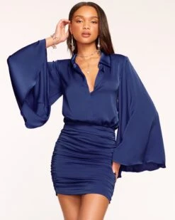 A look to love, the Tara is worthy of a spot in your wardrobe. This sultry design leverages a button down bodice designed to wear open or closed, and paired with the statement sleeves and short hemline, will have you looking for reasons to wear it.
