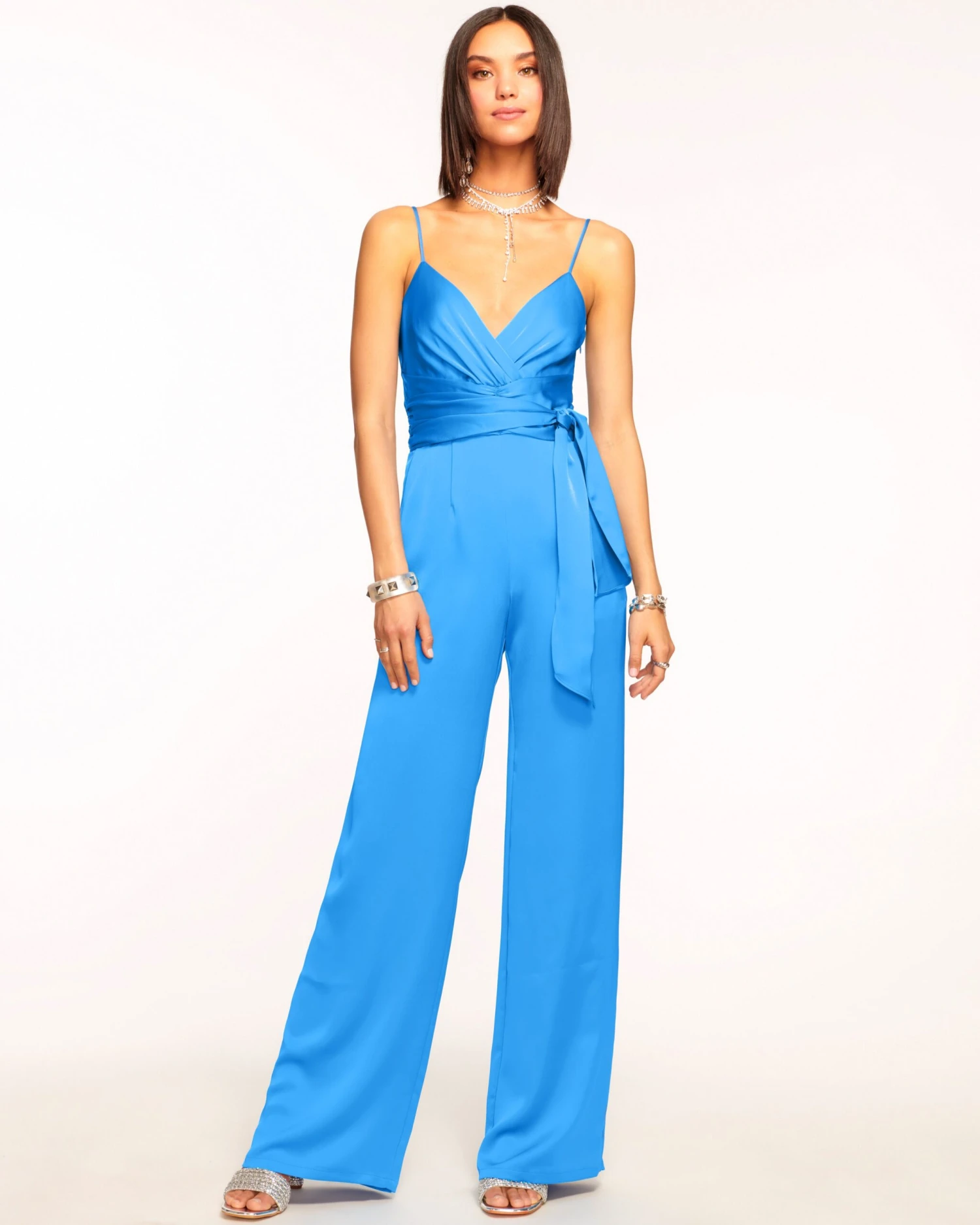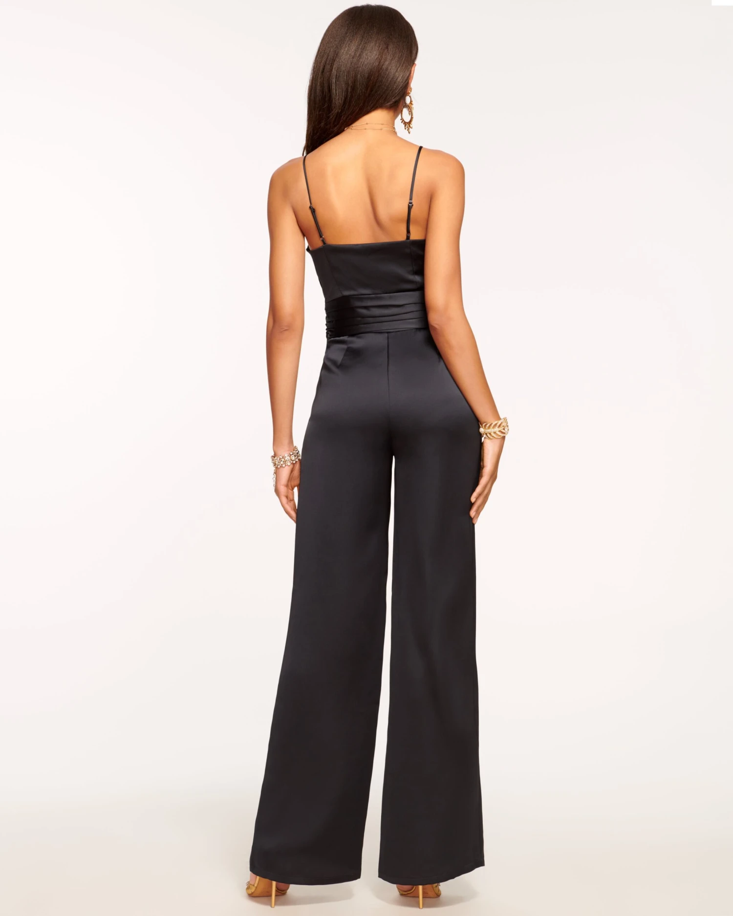 Feel confident each time you slip into the Willow, a classic satin jumpsuit ideal for your next night out. The v-neck bodice has a statement fabric overlay that wraps at the waist for a polished finish, while the long length pairs perfectly with platforms.
